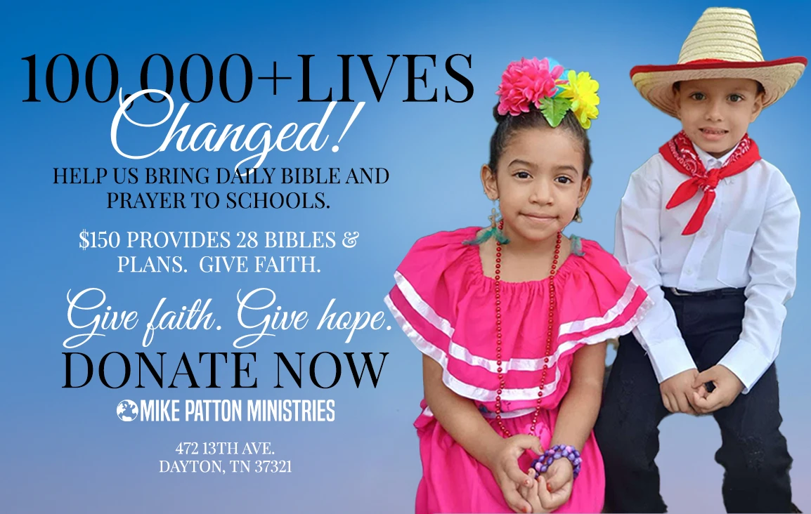 For just $150, you can help provide 28 Bibles and reading plans, equipping schools with the tools to disciple future generations. To support this mission, donate through our website or by check made out to Mike Patton Ministries at: